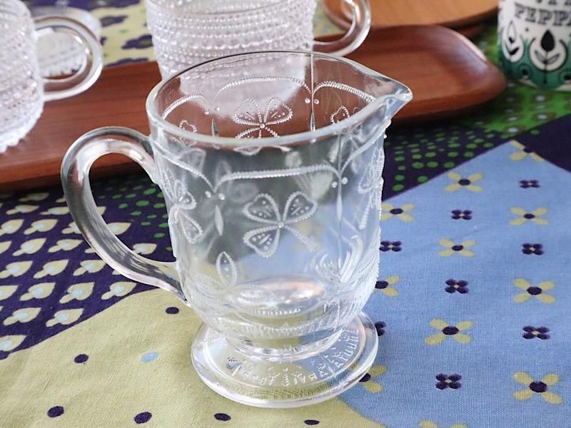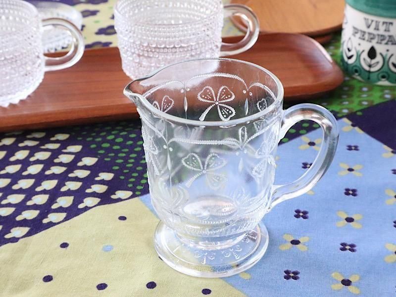 北欧フィンランドのガラスメーカー、Riihimaen lasi(リーヒマエン・ラシ)『 Apila(アピラ)』シリーズのクローバー柄の「クリーマー」が入荷しました。