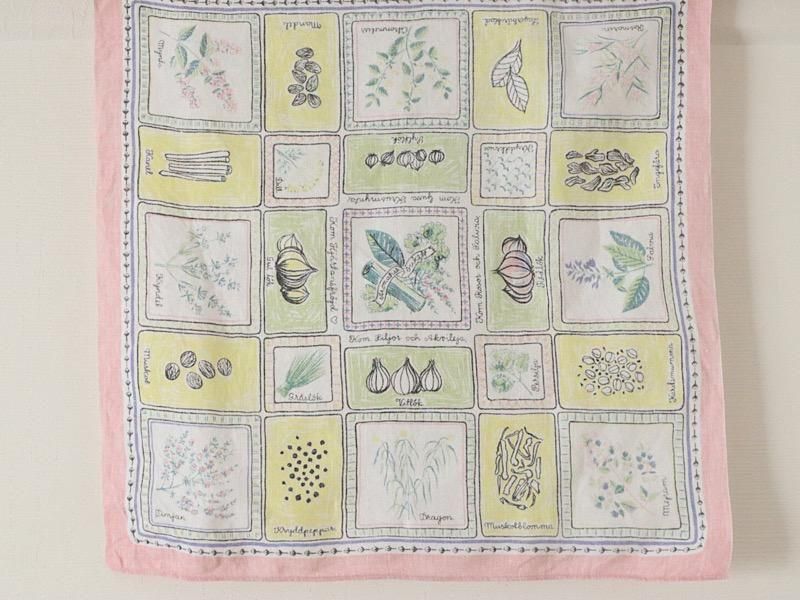 【北欧スウェーデン リネンクロス「In our garden」私たちの庭 72×70cm(1950-60年代)】 suosikki北欧雑貨店スオシッキ