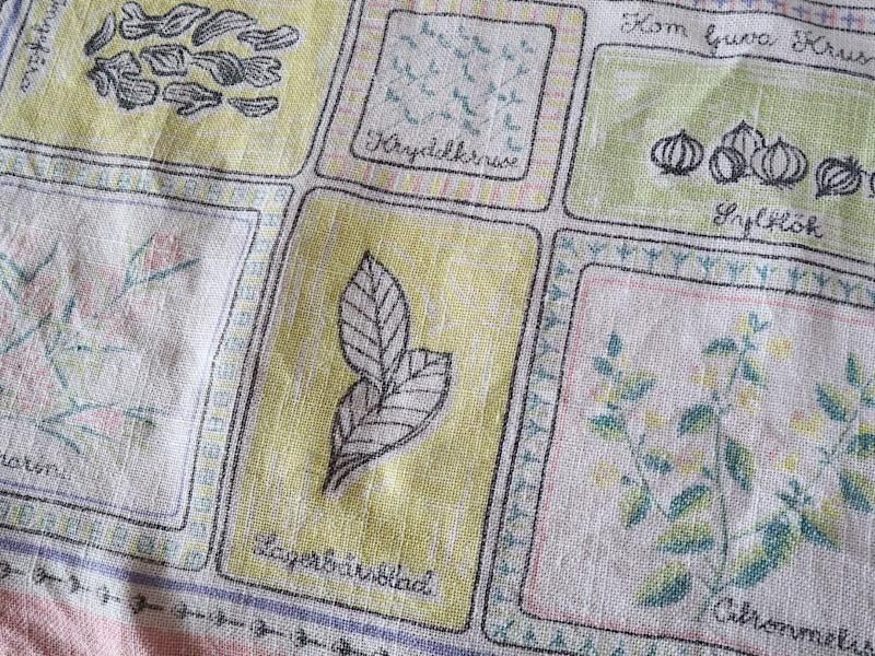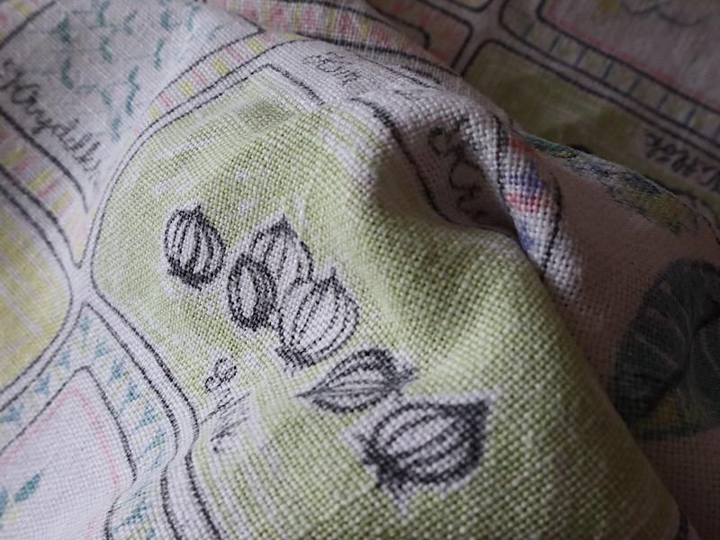 柔らかく張りのある手触りの良いリネンの生地に、ハーブの絵柄がデザインされています。