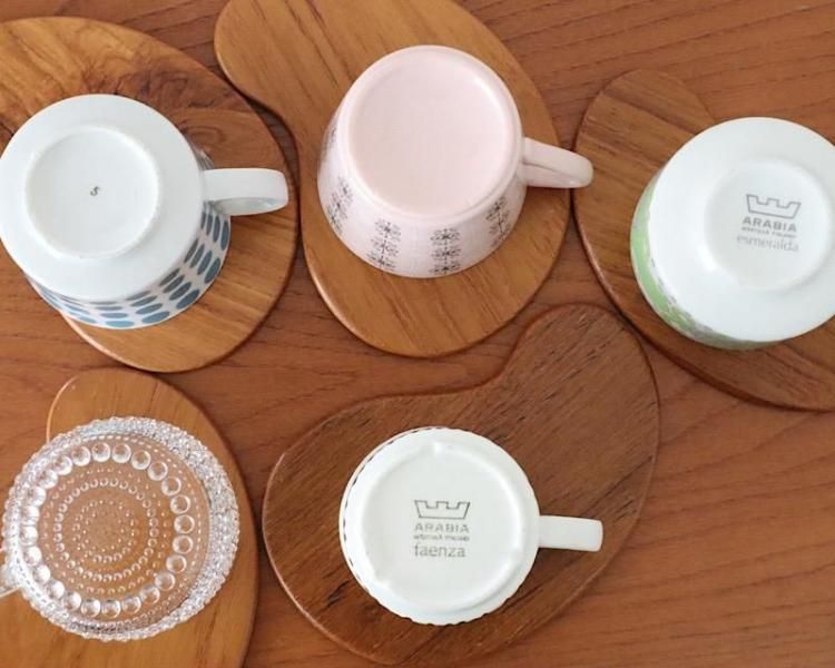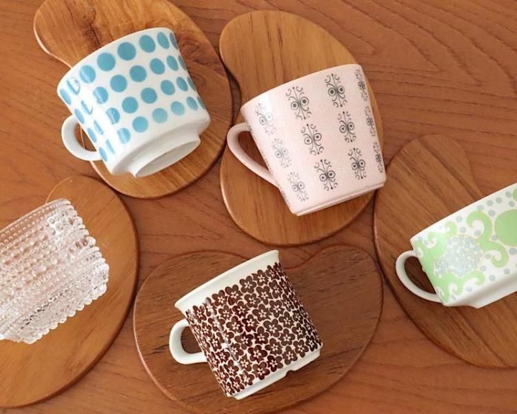 北欧フィンランド『ARABIA(アラビア)』のヴィンテージのコーヒーカップをセレクトし、スウェーデン製『AKTA』ヴィンテージチークトレイ